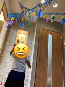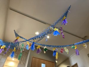 吊るしてある飾りたちは、子どもたちが協力して作ってくれたものなんです☺