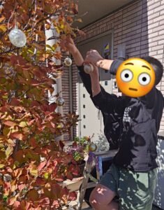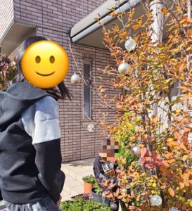 先日、みんなで庭にある木に、クリスマスオーナメントの飾りつけを行いました🎅🎁