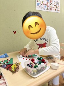 一人一人が思い思いの飾りを貼りつけて、どんどん“自分らしいツリー”ができあがっていきました。