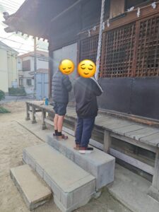 新しい年の始まりに、いつも鬼ごっこや遊具遊びでお世話になっている近所の神社へ初詣に行きました✨